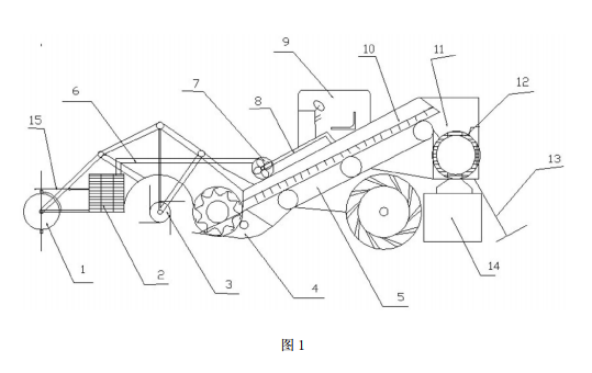 對(duì)于上述問(wèn)題出現(xiàn)的一些問(wèn)題我們有一種土壤篩分裝置,以解決現(xiàn)有技術(shù)中因地膜被風(fēng)化后 無(wú)法撿拾而造成的農(nóng)田有可能無(wú)法再生長(zhǎng)作物的問(wèn)題。輪式行走車(chē)輛的車(chē)架前部設(shè)置有能升降的取土鏟,取土鏟的后部設(shè)置有土壤輸送裝置,土壤輸送裝置的后部連接有篩土裝置,篩土裝置的粗料 出口上連接有雜物箱。取土鏟用于設(shè)置在輪式行走車(chē)輛上,在輪式行走車(chē)輛行走時(shí)候,取土鏟鏟取地表含有碎地膜的土壤,這些土壤在輪式行走車(chē)輛前行時(shí)不斷進(jìn)入取土鏟上的土壤的推擠下進(jìn)入土 壤輸送裝置,經(jīng)過(guò)土壤輸送裝置的輸送進(jìn)入篩土裝置,碎地膜以及雜物被送入雜物箱中,干凈的土壤會(huì)由篩土裝置中漏下回歸田地中,從而可以將地膜清除干凈,同時(shí)還可以對(duì)土壤里的藥瓶、及其 他雜物進(jìn)行清除,能從根本上清除解決細(xì)小無(wú)法撿拾的地膜,徹底解決污染問(wèn)題,使農(nóng)田綠色環(huán)保。