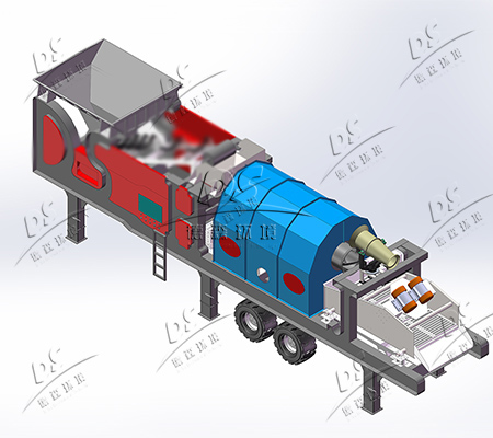 移動式土壤淋洗模塊與固定式淋洗處理系統(tǒng)功能相似,是集物料輸送、淋洗分級、細砂分級篩分為一體的移動式淋洗分選模塊,整套移動淋洗模塊包括:物料輸送單元,土壤擦洗分級單元,脫水篩分單元,除塵單元等。