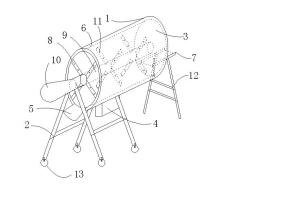 2.根據(jù)權利要求1所述的一種土壤篩分裝置,其特征在于 :所述滾筒篩內設置有攪 拌架,攪拌架被支撐架支撐,攪拌架通過攪拌軸與土壤箱外的電機 相連接。