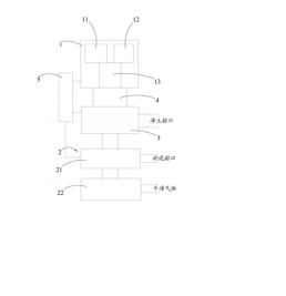 進一步地,微波加熱解吸爐具有氣體出口以及凈土排口,凈土排口與第一輸送機 之間采用第二輸送機進行連接。本實施例中,土壤中的有機污染物在微波加 熱解吸爐內(nèi)的解吸后進入氣相中,其可由氣體出口導(dǎo)入除塵凈化裝置內(nèi)進行處理,而被 解吸后的土壤中半揮發(fā)或揮發(fā)性有機物含量非常低可視為凈土,其由凈土排口排出微波加 熱解吸爐后運送至指定位置堆積。對于第二輸送機通常選用絞龍式螺旋輸送機,土壤在由 第一輸送機4輸送至微波加熱解吸爐內(nèi)的第二輸送機上,通過螺旋翻滾土壤不但能夠利于 土壤中半揮發(fā)或揮發(fā)性有機污染物的加熱處理,還能夠推動土壤至凈土排口處。
